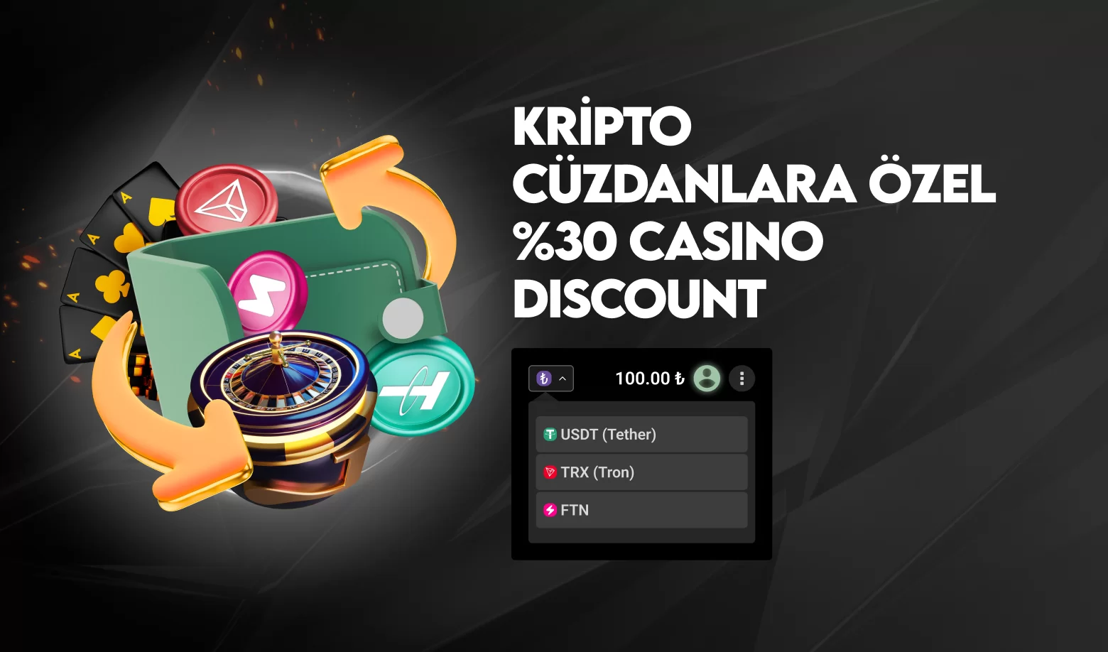 %30 Discount Bonusunuzu FTN kripto cüzdan hesabınızda Profilim - Bonus Yönetimi - Bonus Talebi alanındaki listeden bulunan listeden %25 Casino Kayıp (Discount) Bonusu seçeneğiyle talep edebilirsiniz.